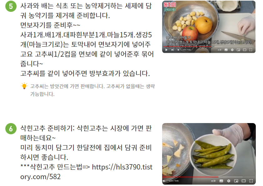 대신...면주머니에 배,사과,마늘,생강,대파흰부분,고추씨,삭힌고추를 넣고
