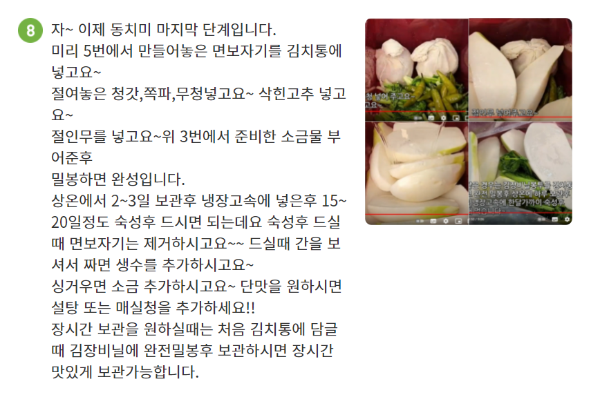 저는 동치미를 그냥 쉽게쉽게 만들었던것 같습니다.