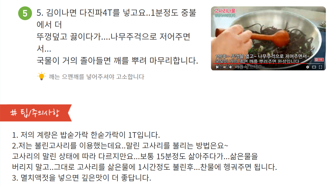 저같은 경우....나물반찬 잘만드시는 시어머님의 말씀을 듣고...