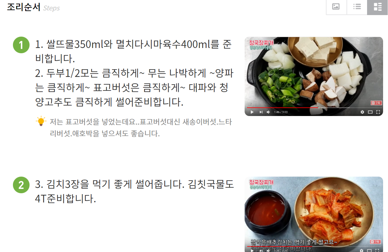 청국장의 걸죽한 맛을 좋아하시는분은 청국장양 조금 늘리세요!!!