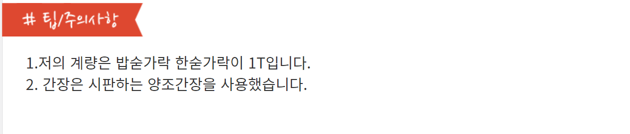 저의 계량은 밥숟가락 한숟가락이 1T입니다.