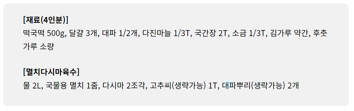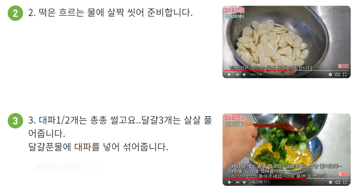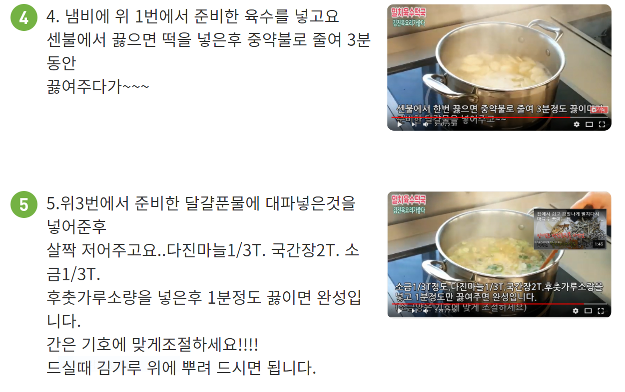 끓이는 떡국 레시피입니다.