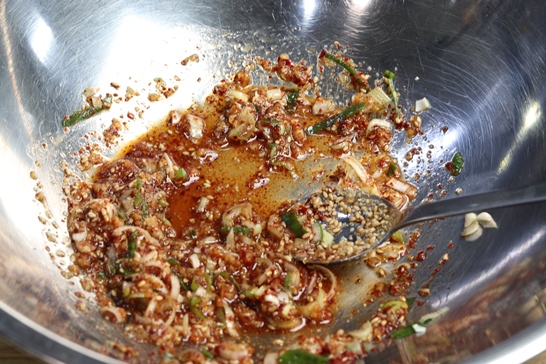 다진파3T. 다진마늘1T. 국간장3T. 액젓1T. 고춧가루1/2T.