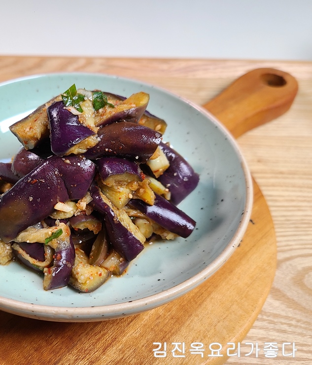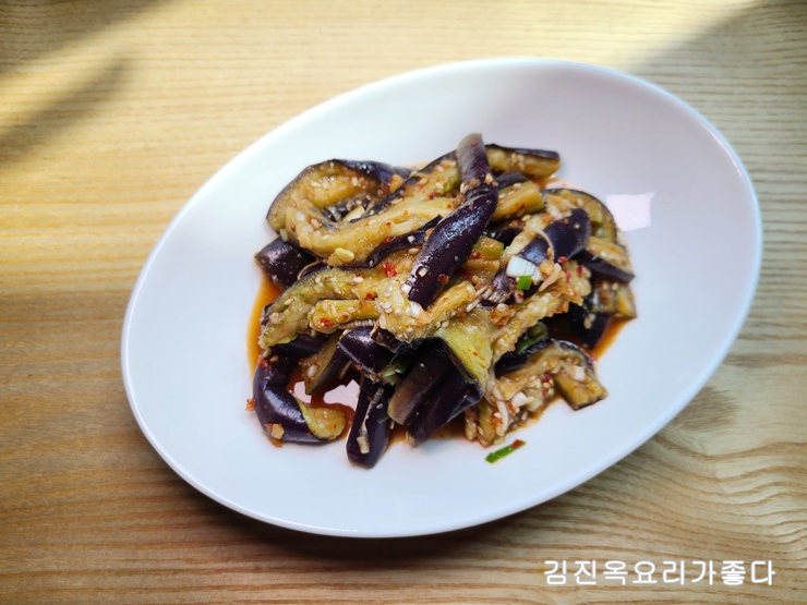 두고 드실 경우에는 가지에서 수분이 나와서요...살짝 가지를 짠후 양념에 버무리는것이