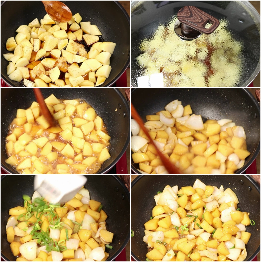 오늘은 감자를 큼직하게 썰어서 간장양념에 조림하는 요리입니다!!