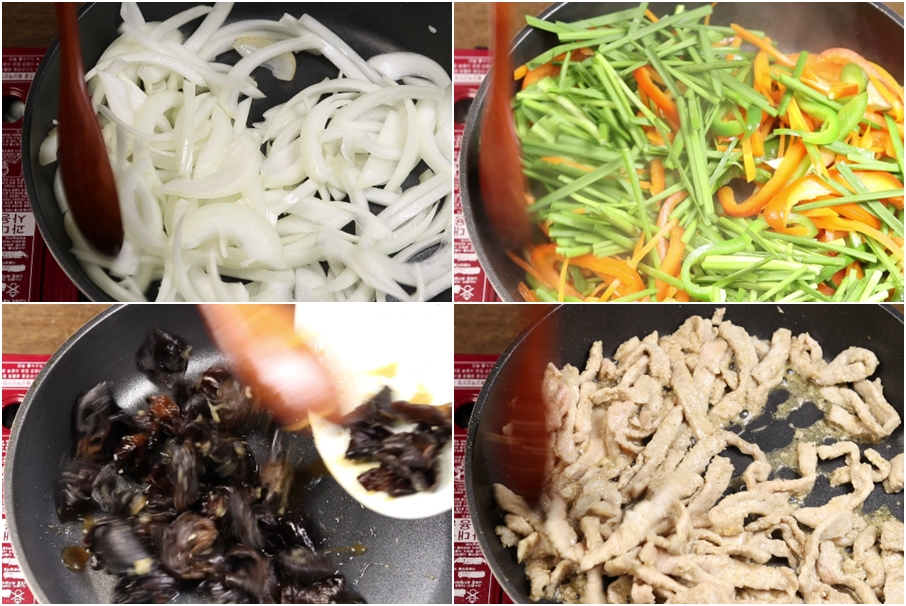팬에 다시 소량의 식용유 넣고요~ 밑간한 목이버섯 넣고요.. 센불에서 볶아준후..