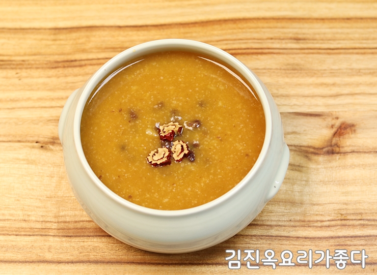 => 호박죽 끓일때 농도가 맞지 않으면요..찹쌀가루를 물에 섞어 넣어 맞추면 됩니다.