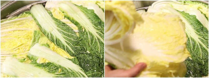 12. 배추를 절인지 총 8시간이 경과되면...배추의 절여진 상태를 확인합니다.