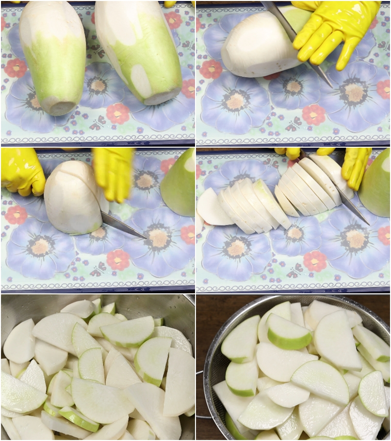 14. 절인배추의 물기를 빼는동안 석박지를 준비합니다~