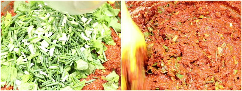 10. 버무린 양념장에 썰어놓은 쪽파,홍갓 넣고요~ 버무려주면 김치양념 완성입니다~