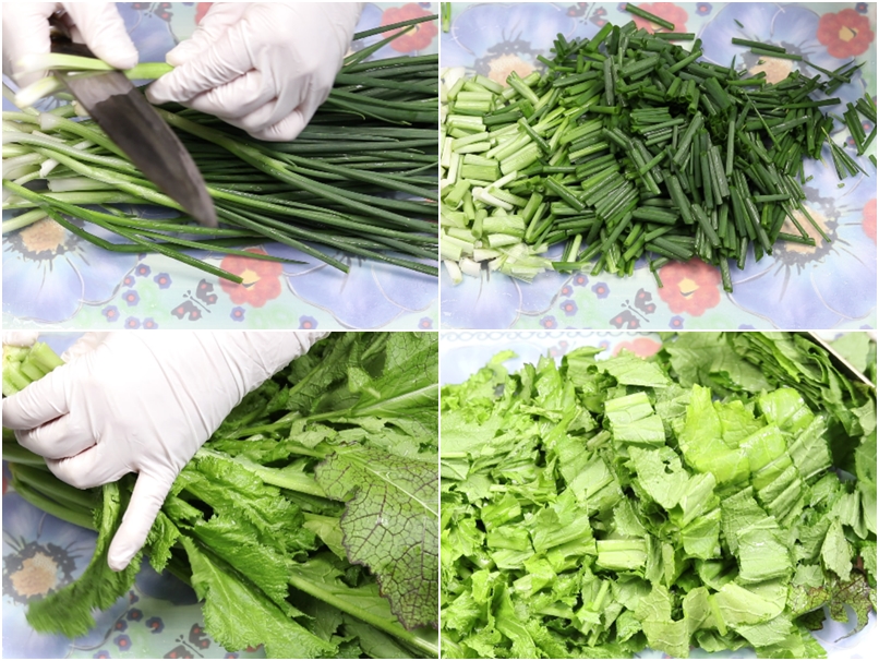 8. 쪽파200g,홍갓400g 씻어서 썰어줍니다.