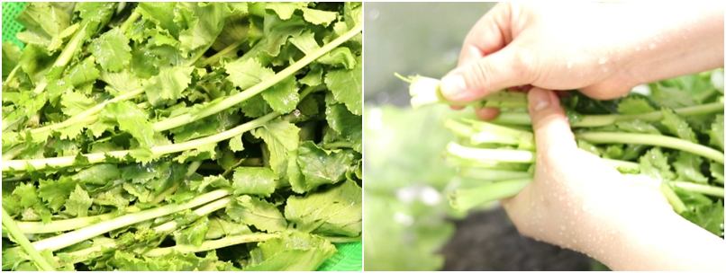 무청은 줄기부분에 흙이 많이 묻어있습니다. 줄기부분 손으로 문질러 준후..