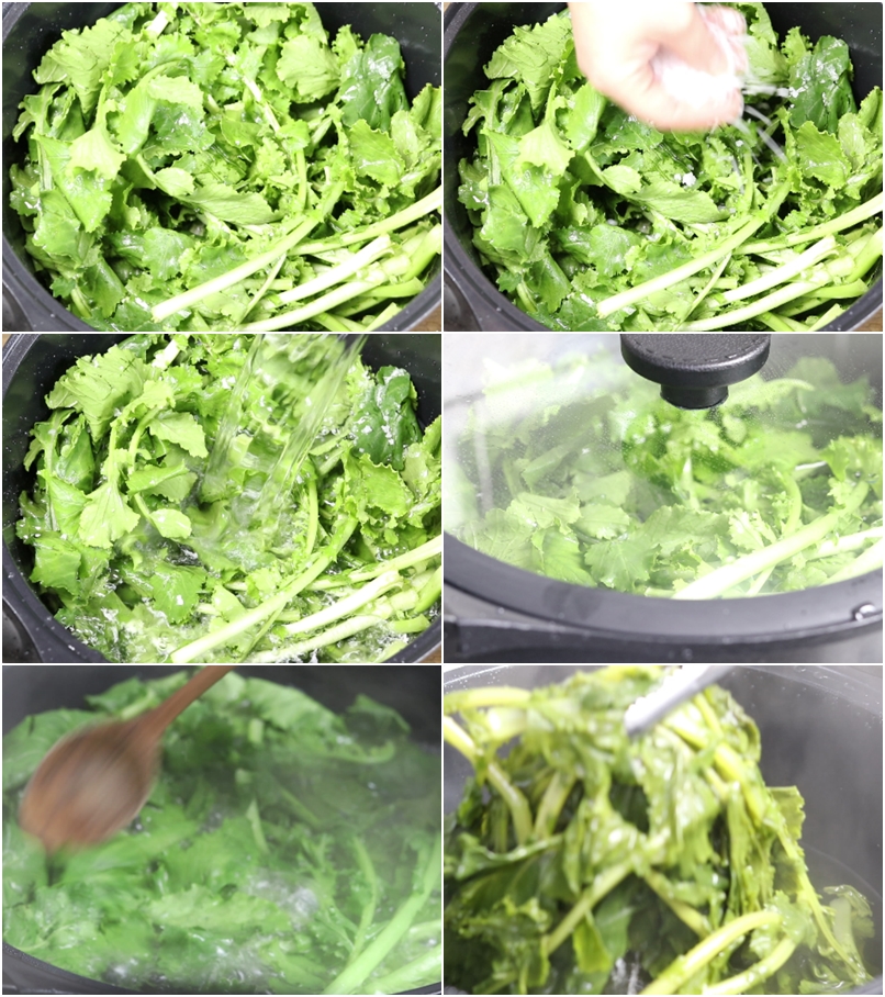 무청이 잠길정도의 물을 부어준후~뚜껑을 덮고 센불에서 끓으면 중불로 줄여