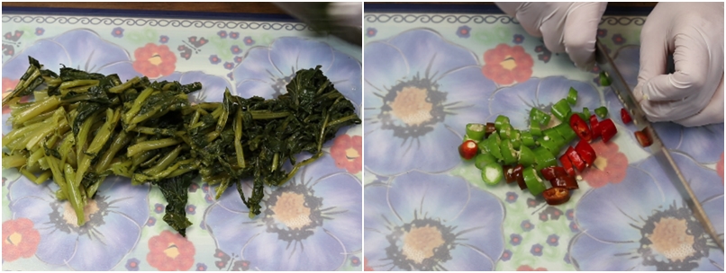시래기를 먹기 좋게 썰어주시고요~청양고추 총총 썰어줍니다.