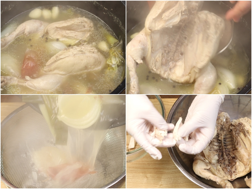 4. 40분동안 삶은 닭은 건져내시고요~ 닭국물은 체에 받쳐줍니다~