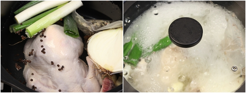 닭국물은 새로운 냄비에 부어주시고요~국물에 기름기가 떠있다면 수저로 제거해주세요~