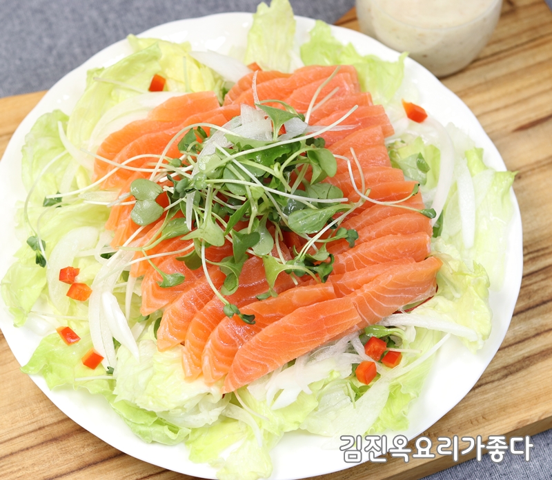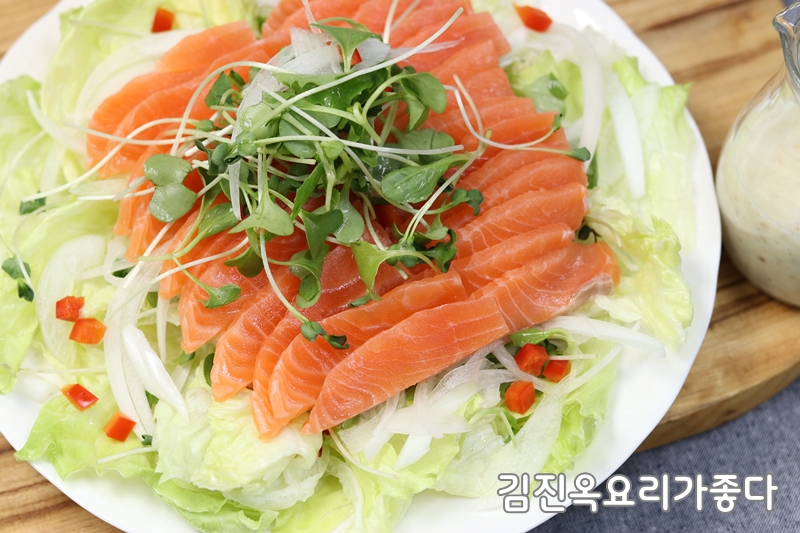 생연어.양상추.어린잎채소.무순.양파