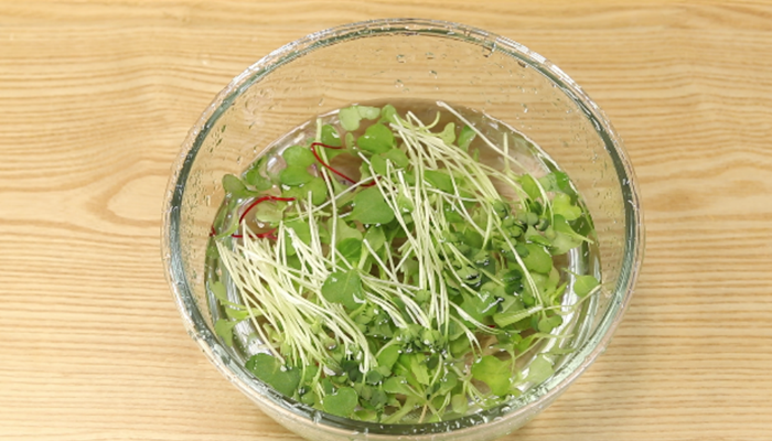 2. 어린잎채소와 무순도 찬물에 담궜다가 체에 받쳐 물기를 제거합니다~