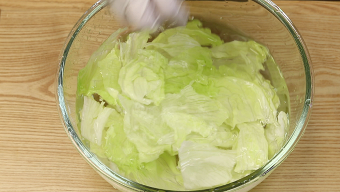 1. 양상추는 먹기 좋게 손으로 한입크기로 뜯어 찬물에 담궜다가 체에 받쳐 물기를 제거합니다~