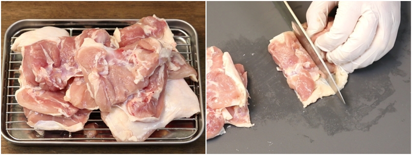 1. 손질된 닭다리살을 세척후 먹기 좋게 썰어줍니다.