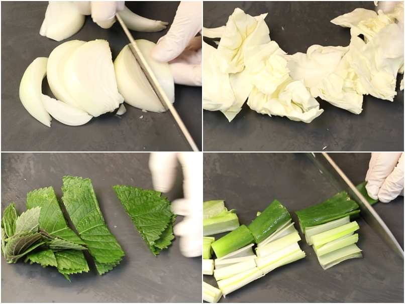 깻잎10장은 세척후 큼직하게 썰어줍니다(깻잎은 생략가능합니다)