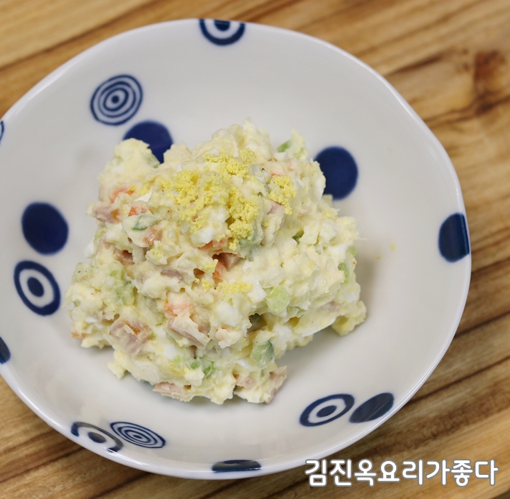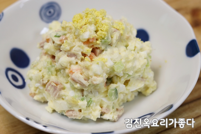 저는 감자에 계란삶아서 양파.오이.당근.햄을 넣었는데요~