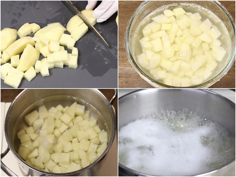 => 감자의 녹말기를 제거하지 않고 삶으면 나중에 으깨었을때