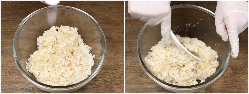 고운소금1/2T정도 넣고 골고루 버무려 밥 양념을 해줍니다.