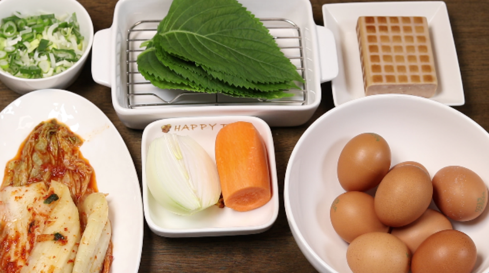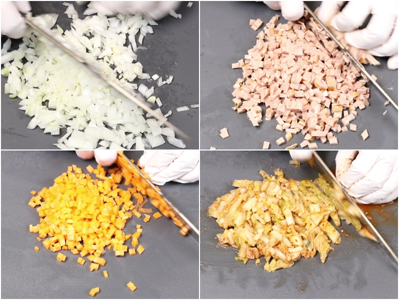 햄100g.잘익은배추김치3장.다진파5T.식용유소량