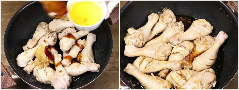 2. 데친 닭다리를 조림할 냄비에 넣고요~ 양념을 해줍니다.