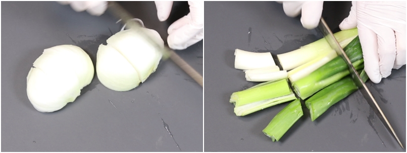3. 양파1개와 대파1개 큼직하게 썰어줍니다~
