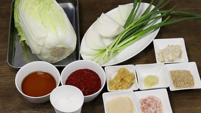 무는 아주소량(20g). 찬밥1T듬쁙. 새우젓1T듬쁙. 다진마늘2T.다진생강1/2T.멸치액젓6T.