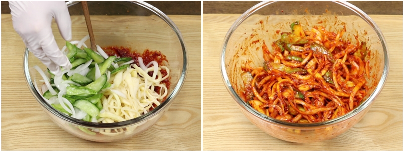 => 청오이를 사용하면 색도 예쁘고 식감도 더 좋습니다.