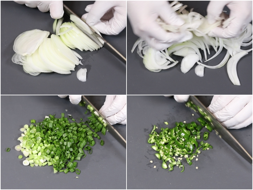 2. 양파반개는 아주 곱게 채썰어준후 가닥가닥 풀어줍니다.