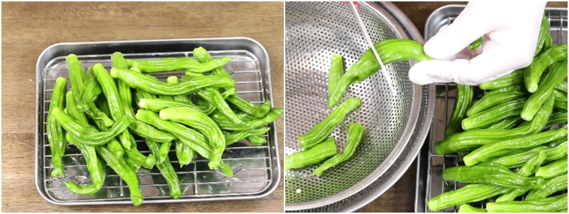 꽈리고추의 크기가 큰 경우 가위로 절반 절단해줍니다~