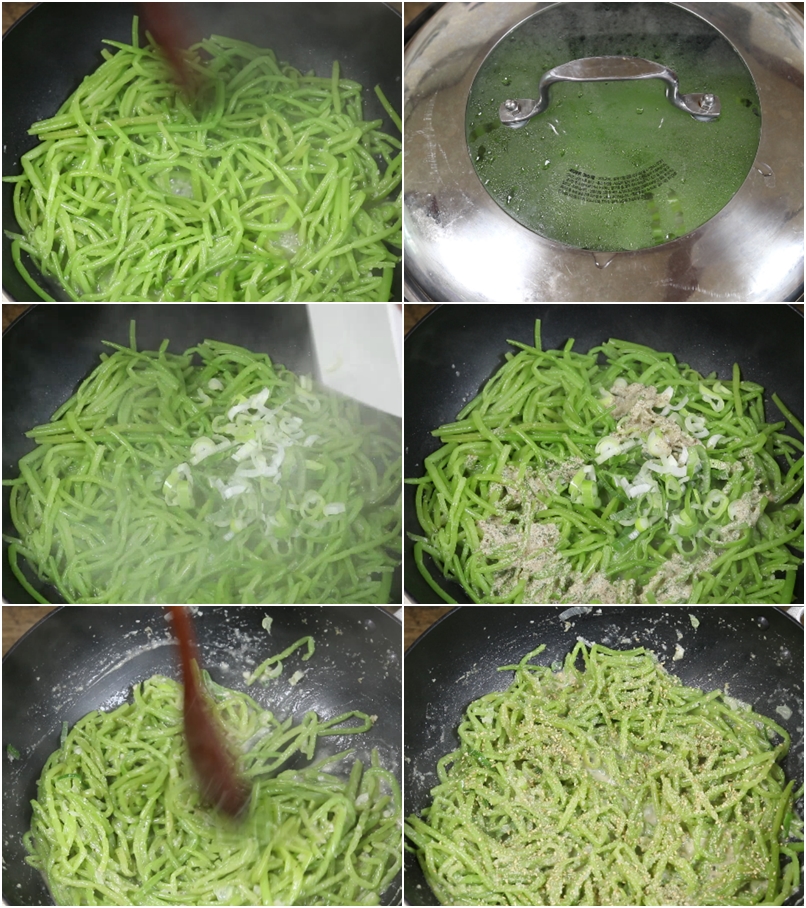 ***나물볶음에 들깨가루를 넣을때 찹쌀가루를 소량 같이 넣어주면 들깨가루가 겉돌지 않습니다.