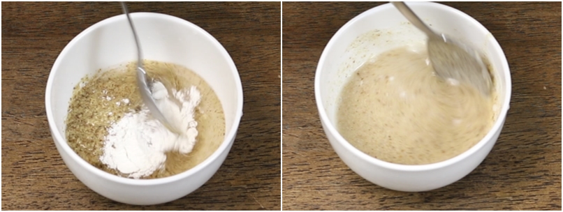 그릇에 물8T.껍질제거한 고운들깨가루3T 넣고요~찹쌀가루1/4T정도 넣고요~