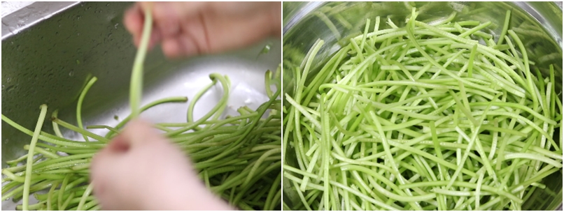 껍질 벗기면서 먹기 좋은 크기로 중간을 손으로 부러뜨리면서 잘라주면 나중에 따로 자르지 않아도 되서