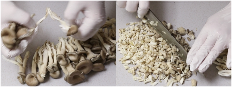 1. 느타리버섯은 밑둥의 더러운 부분 제거하시고요~ 가닥가닥 뜯어준후