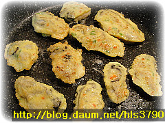 3. 부침가루 묻힌 굴을 반죽물에 넣고...식용유 두른 후라이팬에 노릇하게 지지면 됩니다.