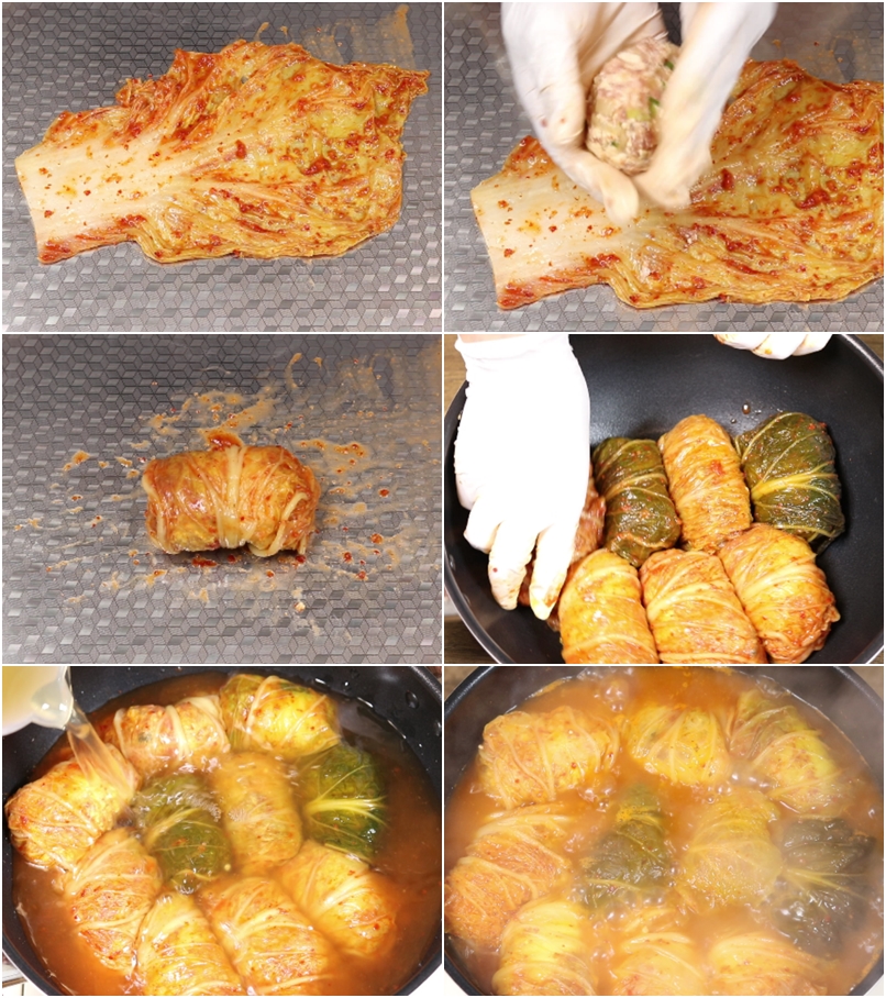 배추잎의 너비가 작은 경우 배추잎을 두장 겹쳐서 돌돌 말아주면 됩니다.
