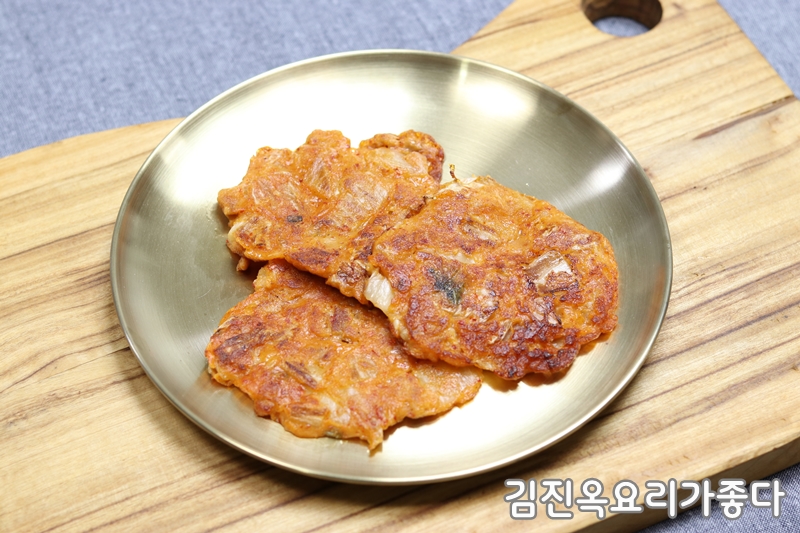 돼지고기가 들어가면 김치전이 좀 더 고소하고 씹히는 맛이 좋답니다.