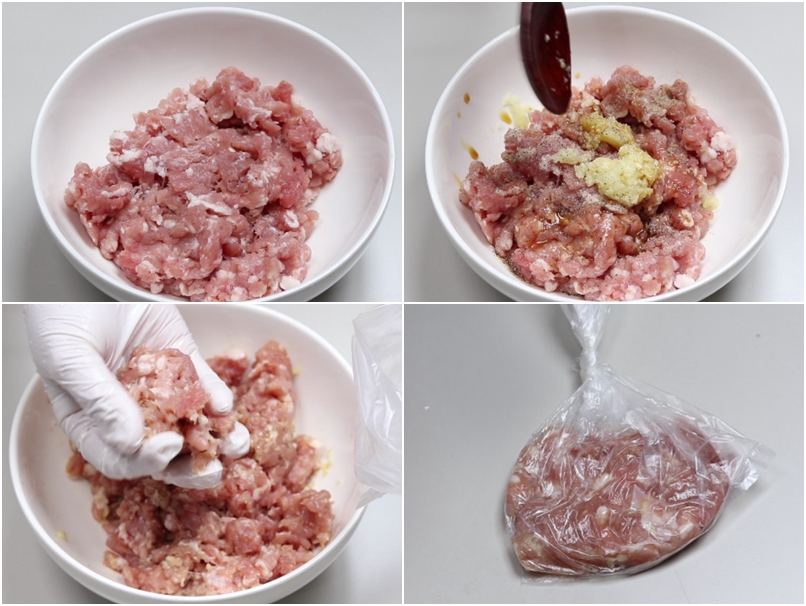 ***돼지고기갈은거 양념: 돼지고기갈은거 400g.다진마늘1/2T. 미림1T.후춧가루소량.
