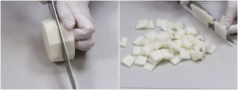 2. 무200g은 나박하게 썰어준비합니다.
