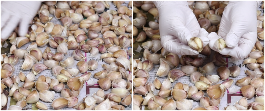 이때 썩은 마늘이나 물러진 마늘은 제거 합니다.