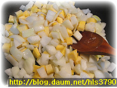 양파를 넣고 소량의 소금을 넣은후 1분정도 더 볶아줍니다..