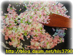 볶아줍니다.. 감자가 어느정도 익으면 피망과 햄을 넣고 1분 볶아줍니다.