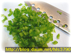 피망도 잘게 썰어주세요...( 피망대신에 파프리카를 사용하셔도 맛나요~)
