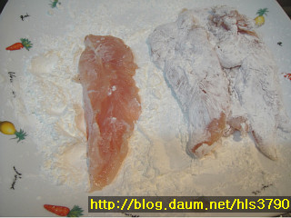 물기제거후 녹말가루를 입히시고요...녹말가루가 너무 많이 붙지 않게 잘 털어주세요~