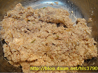 2. 으깬두부+참치+김치+양파를 볼에 담고 소금.후추가루를 넣어 잘 버무려주세요...